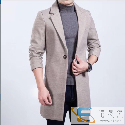 新款秋冬呢大衣男中长款英伦修身毛呢外套西装领夹克男装休闲妮子